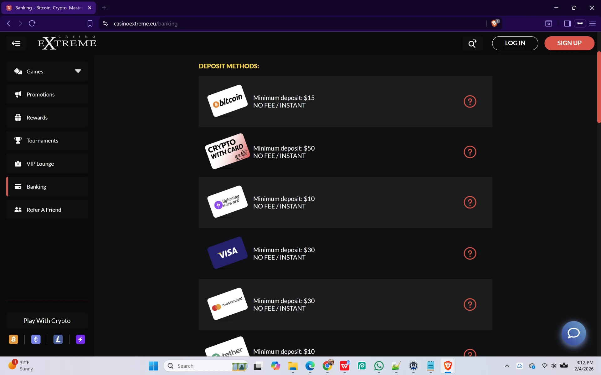 Our team manually tested Casino Extreme on February 4th, 2026, to verify that their $10 minimum deposits are still in effect. Below is the step-by-step proof of our successful redemptions.